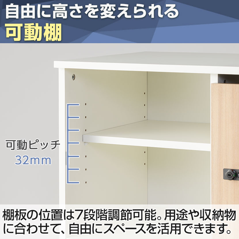棚板の位置は、7段階に高さを調節可能。用途や収納物に合わせて、自由にスペースを活用できます。