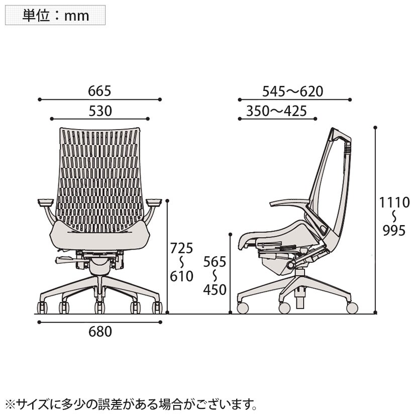 肘高さ / 610~725mm