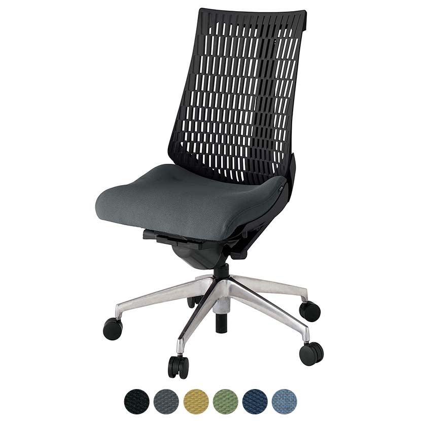 座面のインナーシェルに多数のスリットを設け、フレキシブルに姿勢変化に対応。