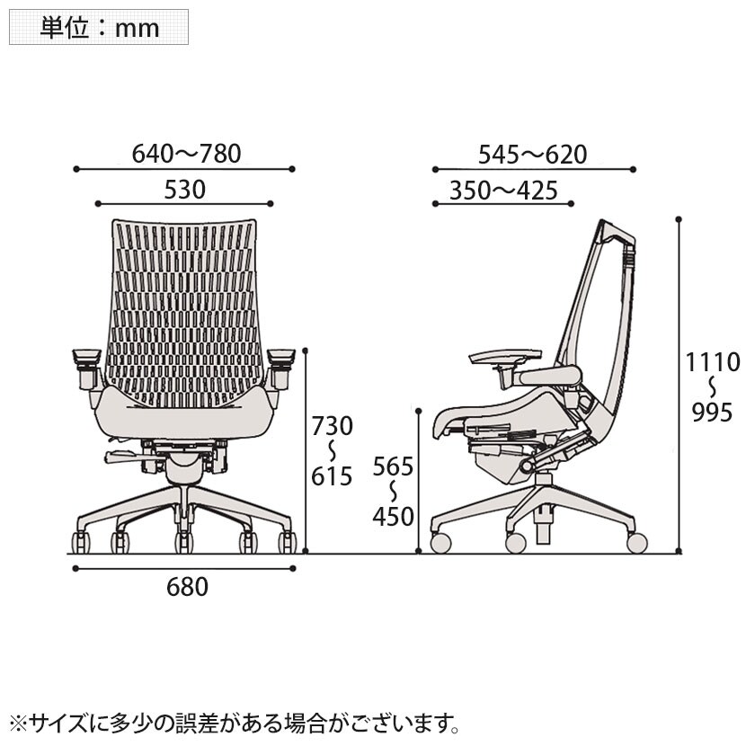 肘高さ / 615~730mm