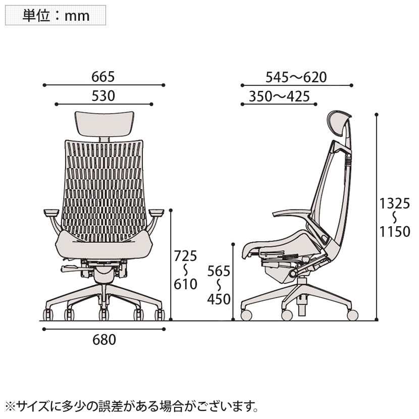 肘高さ / 610~725mm