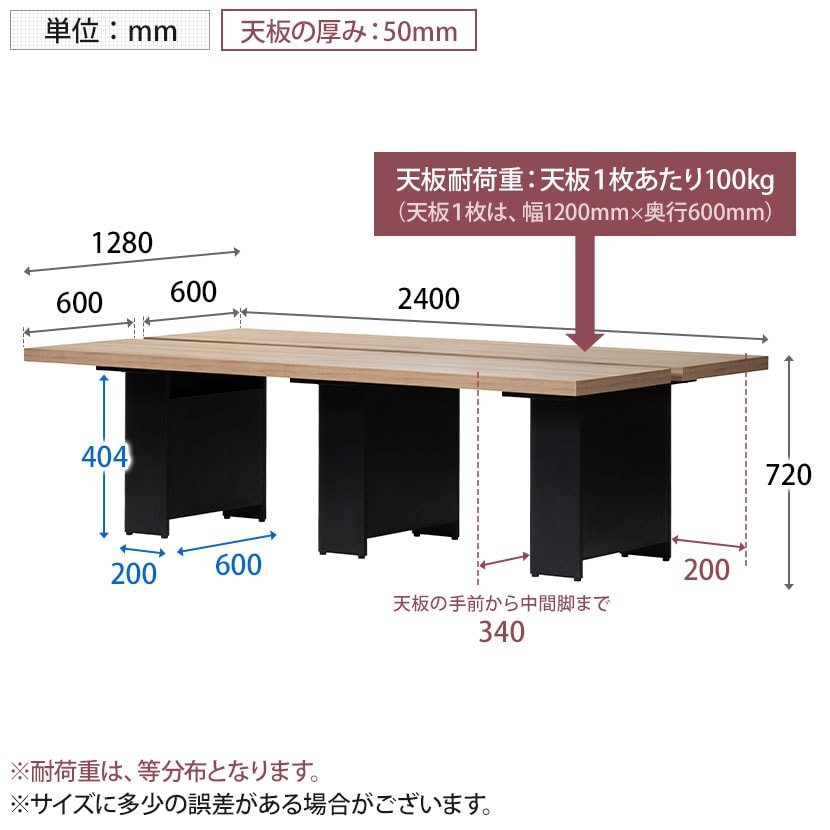 重厚感のある50mm厚天板