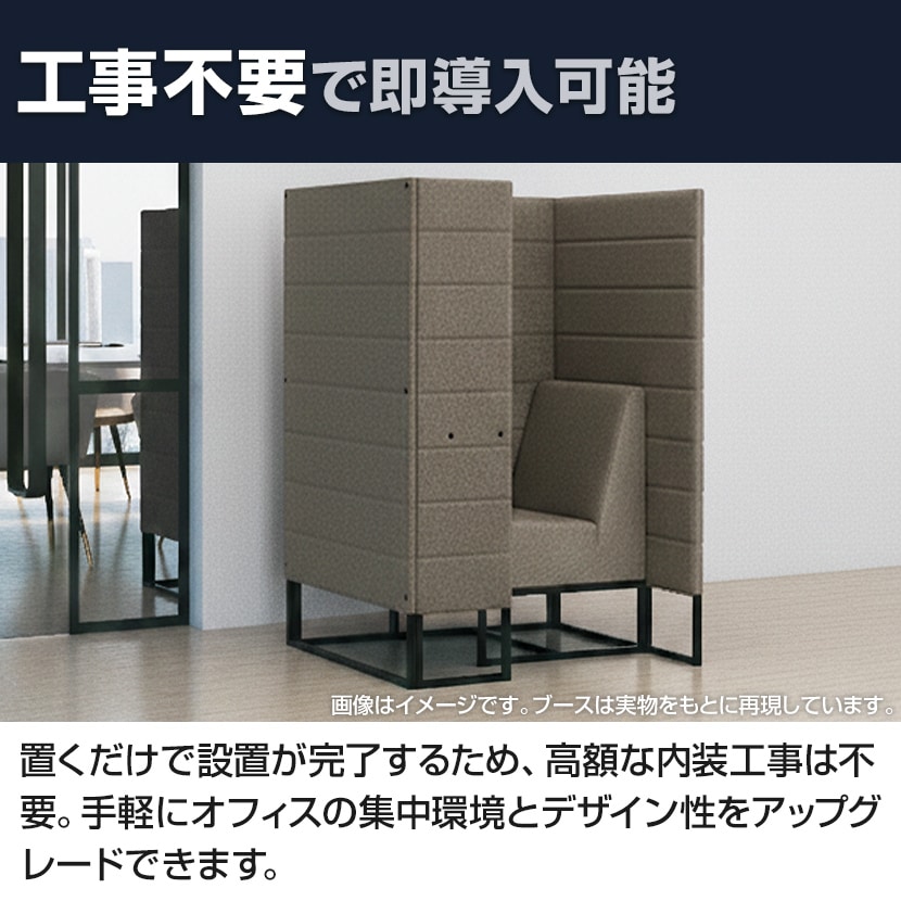 置くだけで設置が完了するため、高額な内装工事は不要。手軽にオフィスの集中環境とデザイン性をアップグレードできます。