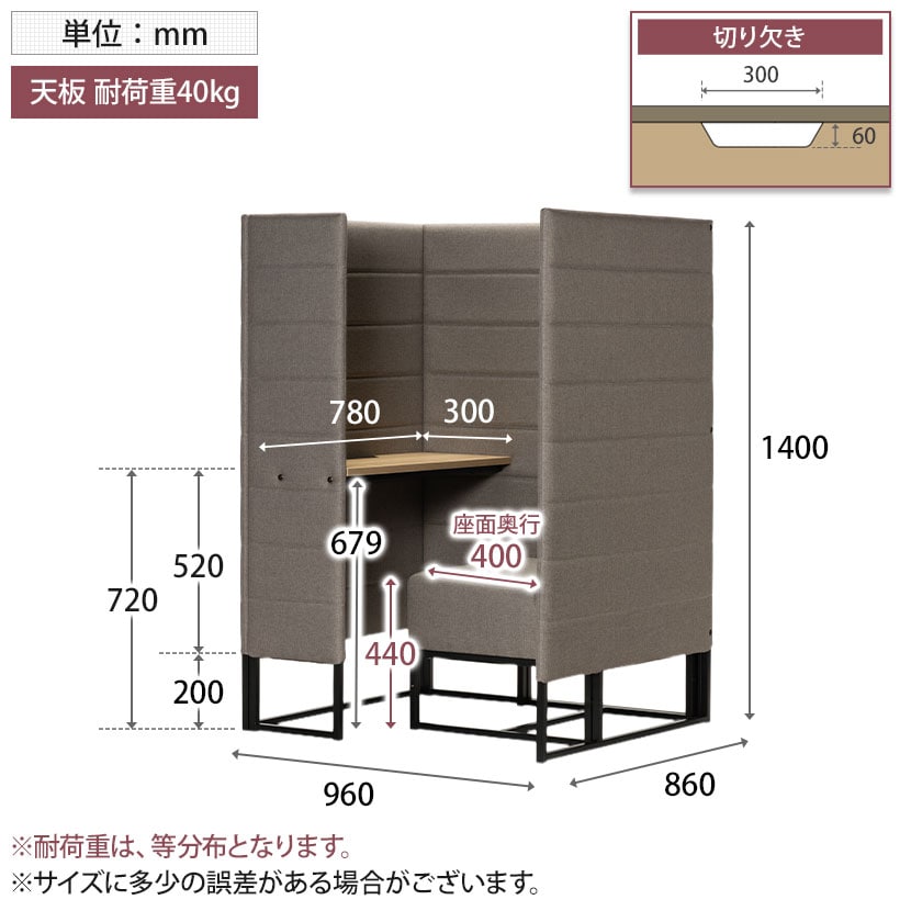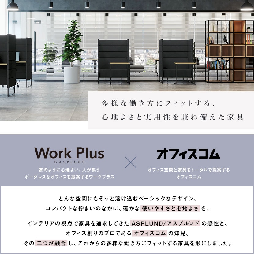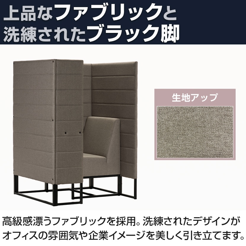 デスク・ソファ・パネルを一体化した設計により、限られたオフィス面積でも“適度にこもれる”集中空間を省スペースに実現します。高さ1400mmのパネルが周囲の視線をやわらかく遮り、オープンな環境の中に、思考を深めるためのパーソナルゾーンを創出。工事不要で置くだけの簡単設置のため、レイアウト変更や増設にも柔軟に対応でき、空間効率と生産性を同時に高めます。