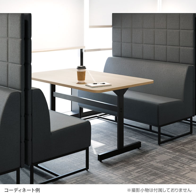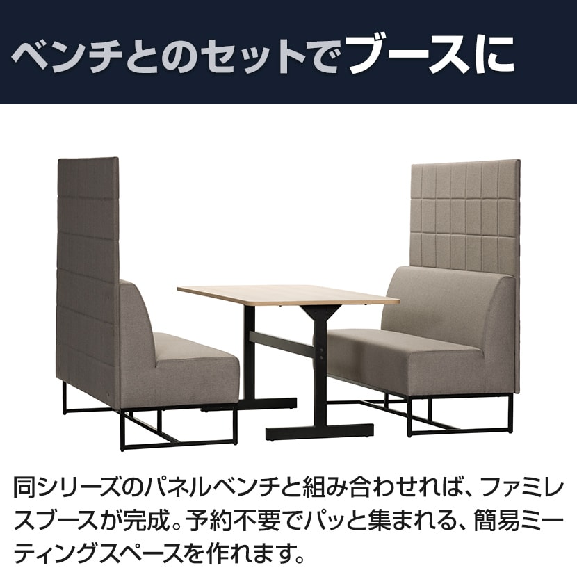 同シリーズのパネルベンチと組み合わせれば、ファミレスブースが完成。予約不要でパッと集まれる、簡易ミーティングスペースを作れます。