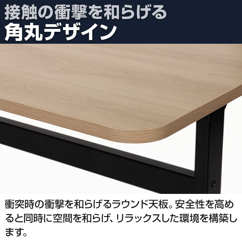 衝突時の衝撃を和らげるラウンド天板。安全性を高めると同時に空間を和らげ、リラックスした環境を構築します。