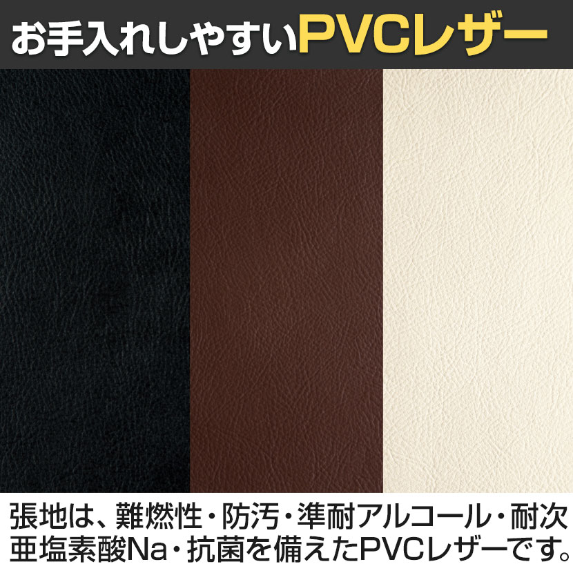 座面(張地) / PVCレザー(難燃性、防汚、準耐アルコール、耐次亜塩素酸Na、抗菌)