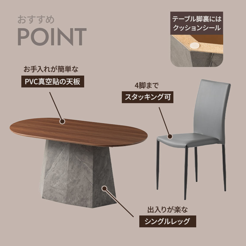 ●空間を引き締める石目調の脚部