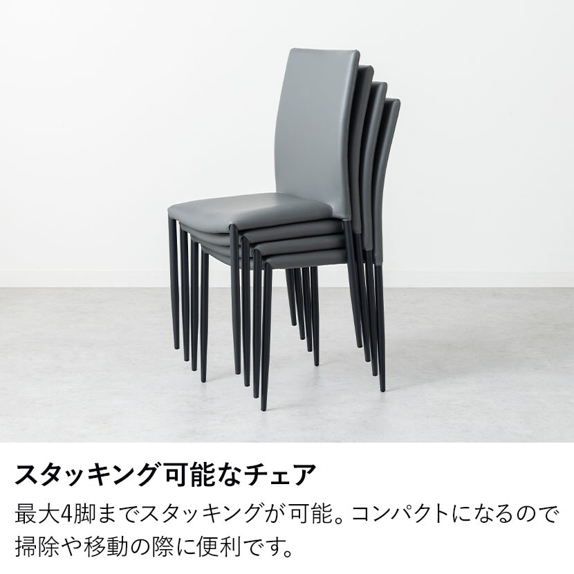 最大4脚までスタッキングが可能。コンパクトになるので掃除や移動の際に便利です。