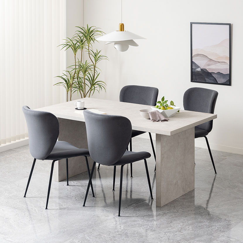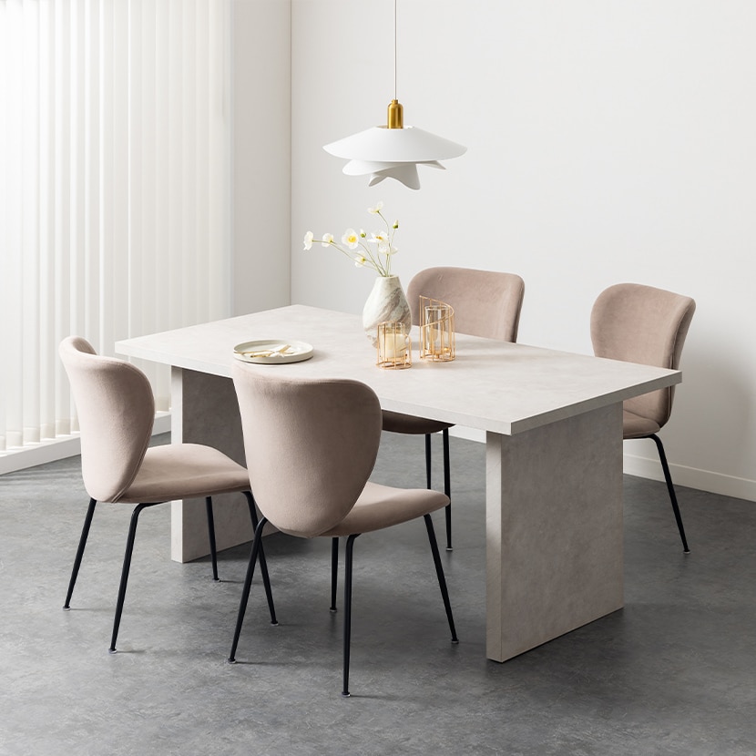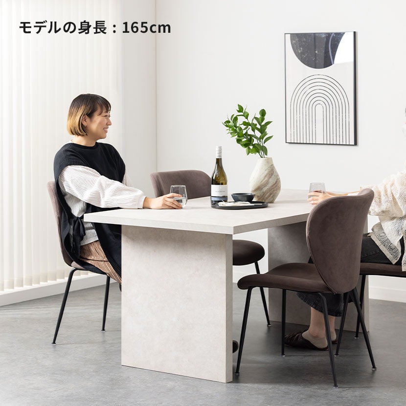 テーブルとセットで配置することで、素材感やデザインのバランスが整い、モデルルームのような洗練された空間が完成します。
