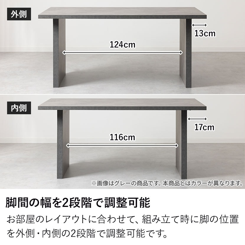 組み立ての際、脚を取り付ける位置を内側と外側の2パターンから選ぶことができます。