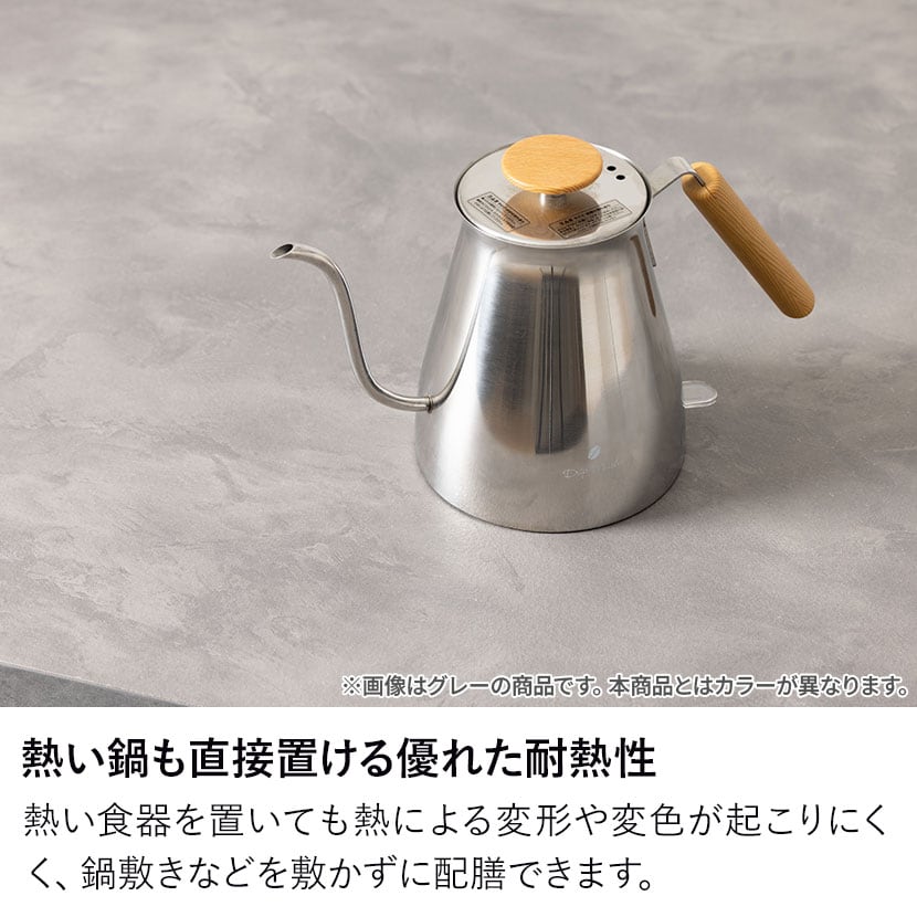 熱に強い素材のため、熱い食器を置いても熱による変形や変色が起こりにくく、鍋敷きなどを敷かずに配膳できます。