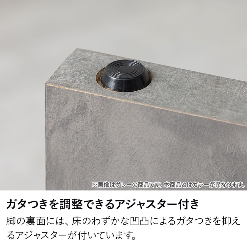 脚の裏面には、床のわずかな凹凸によるガタつきを抑えるアジャスターが付いています。