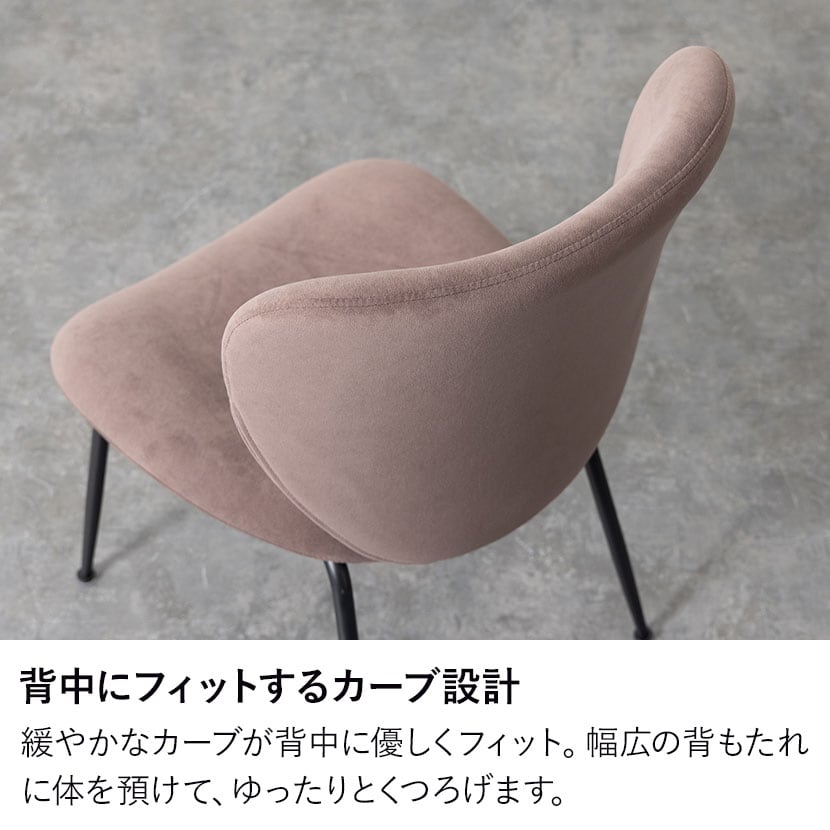 背もたれは緩やかなカーブを描いており、背中のラインに優しくフィットします。