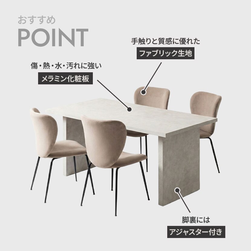 ●天板も脚も全て石目調で統一したデザイン