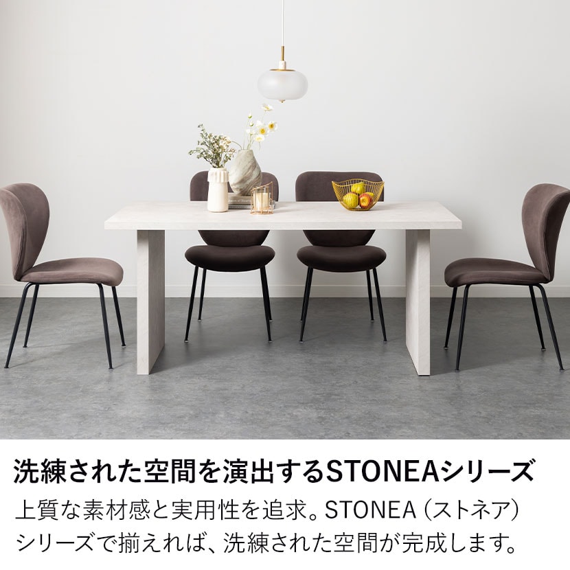 見た瞬間に素材感と高級さを想起させながら、日常使いに適した家具を目指して開発されたSTONEA(ストネア)シリーズ。