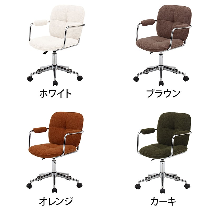 もこもこしたブークレ生地が特徴の、フェミニンとカジュアルが融合したオフィスチェアです。