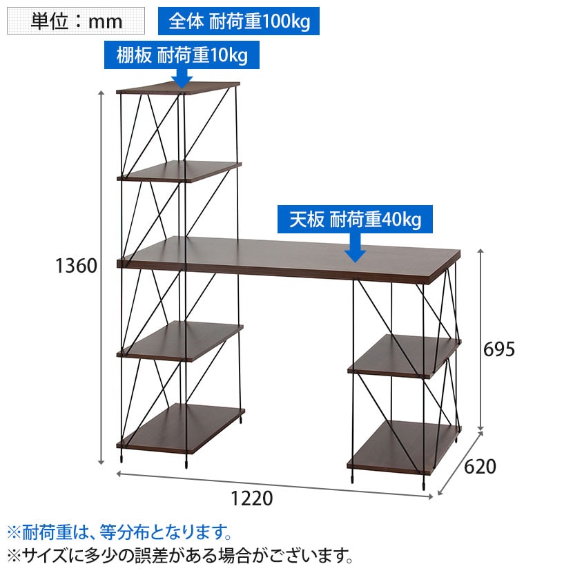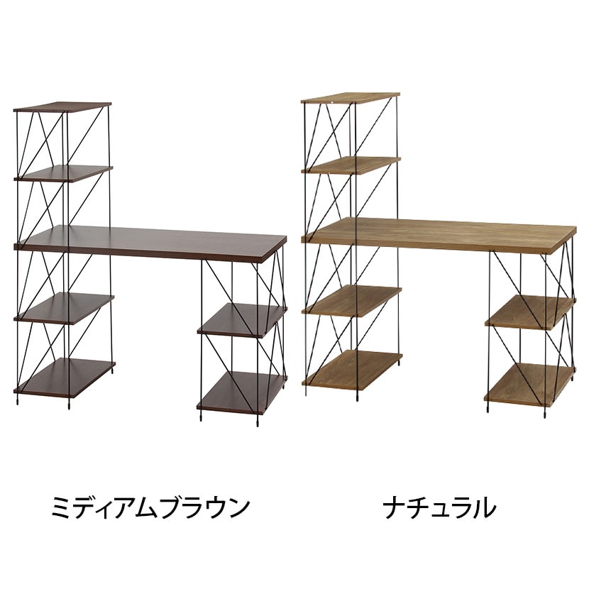 棚板の穴にワイヤーフレームを差し込むだけで完成する「ワイヤーロックシステム」を採用したデスクです。