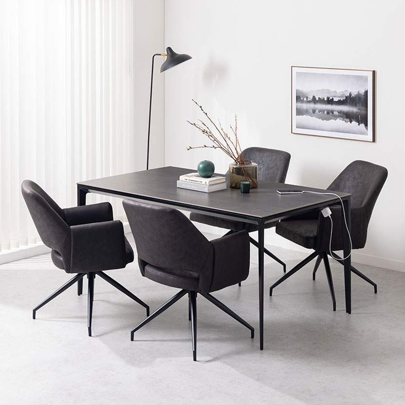 デザイン性だけでなく、回転機能による利便性も兼ね備えており、ダイニング空間をワンランク上の雰囲気へと導きます。