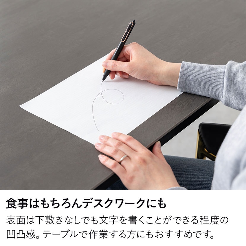 表面は下敷きなしでも文字を書くことができる程度の凹凸感。テーブルで作業する方にもおすすめです。