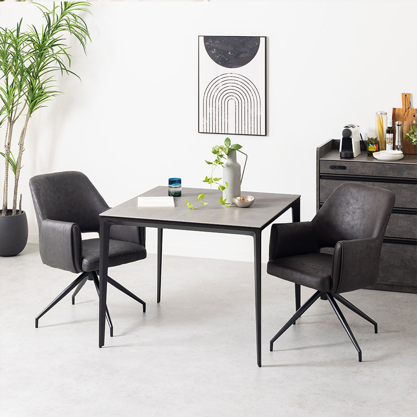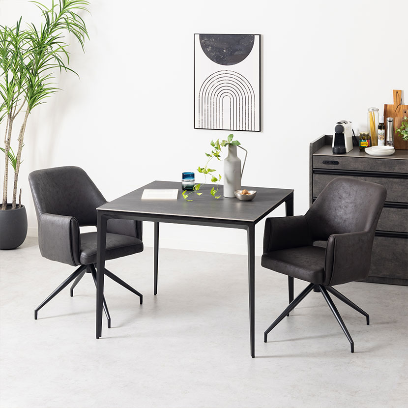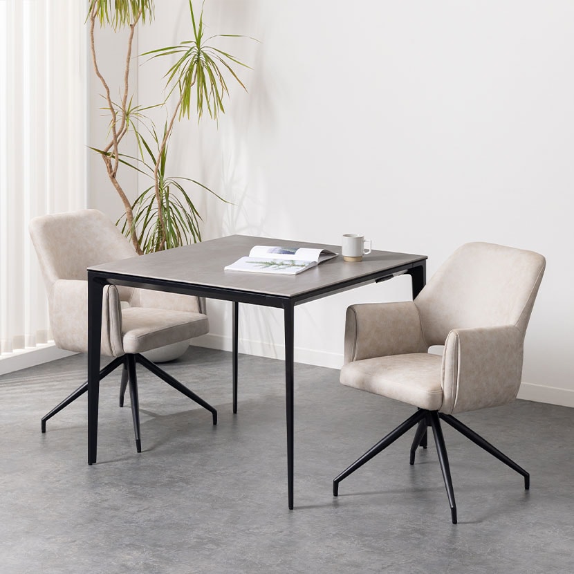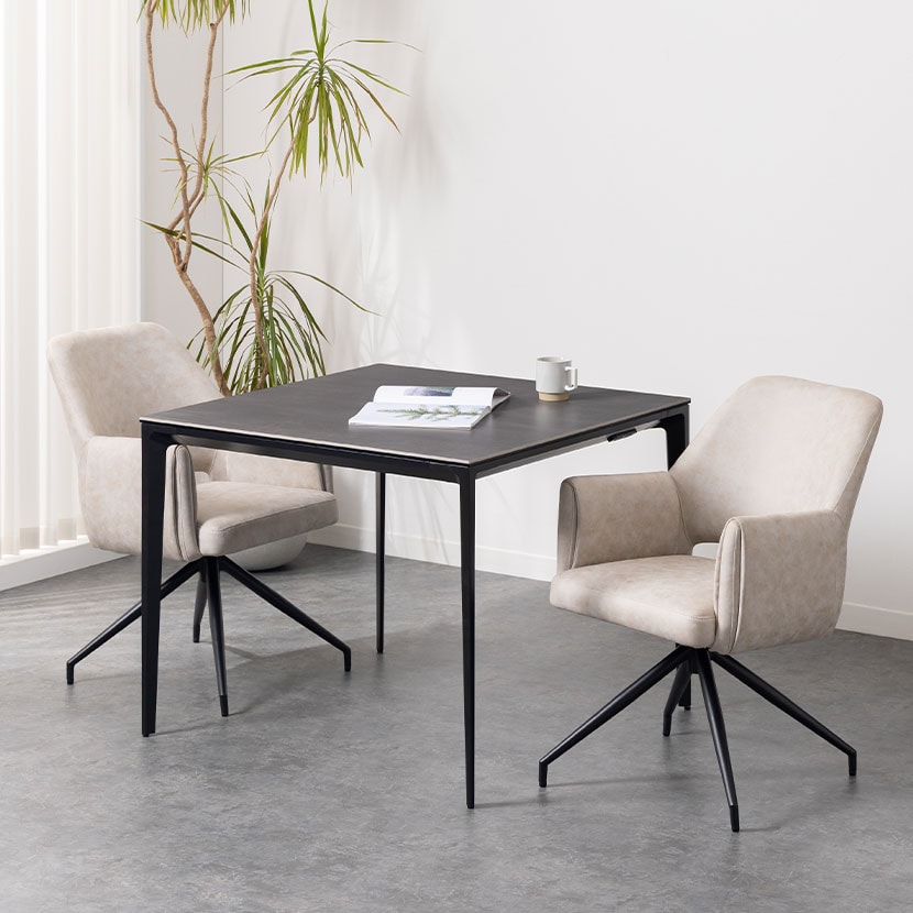 デザイン性だけでなく、回転機能による利便性も兼ね備えており、ダイニング空間をワンランク上の雰囲気へと導きます。