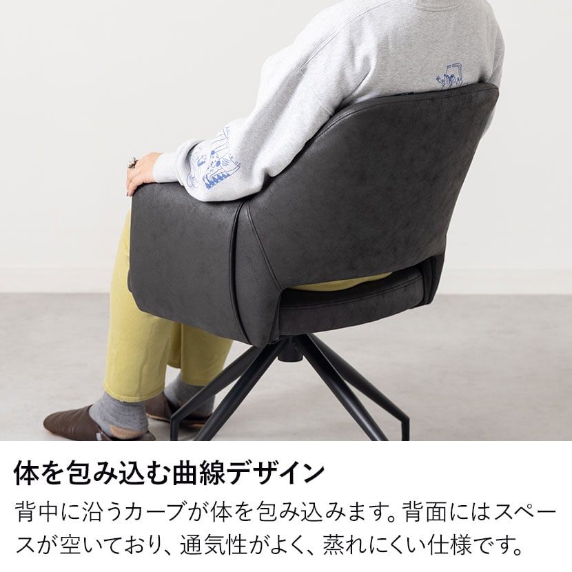 背もたれは背中のラインに沿うようにカーブしており、しっかりと体を包み込みます。