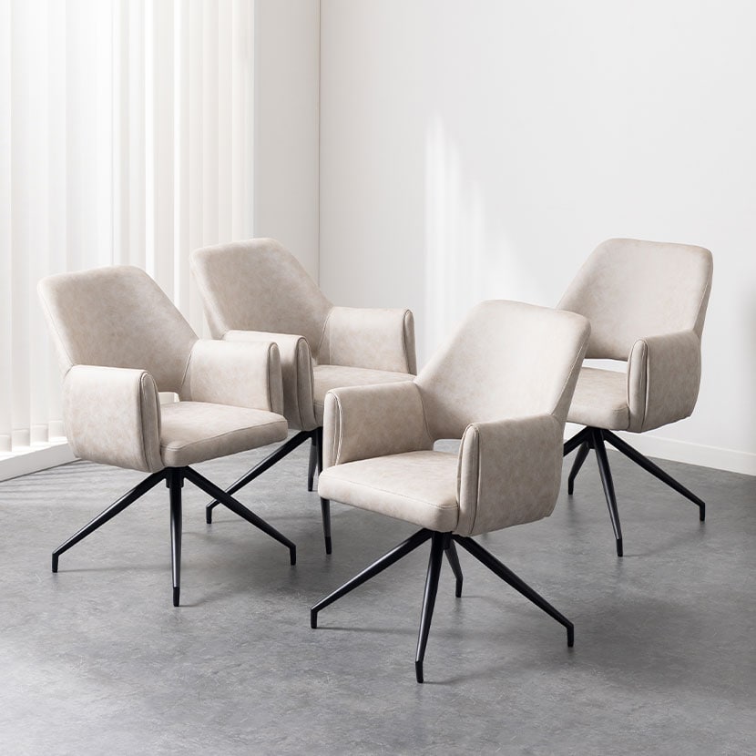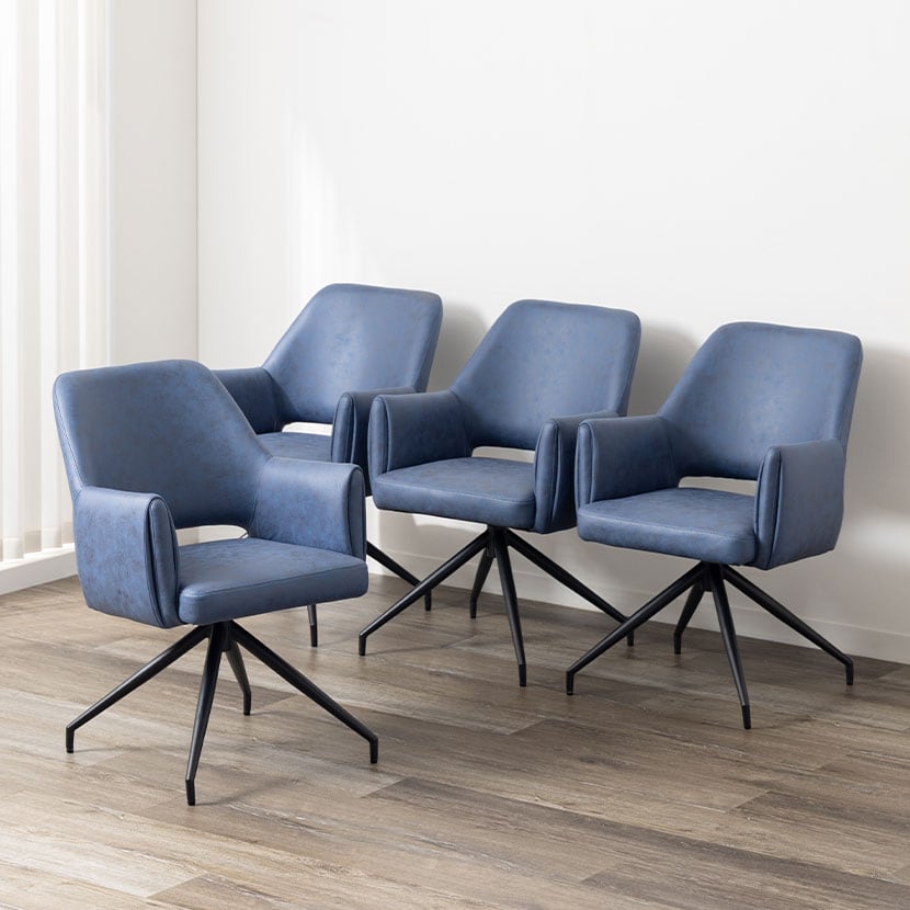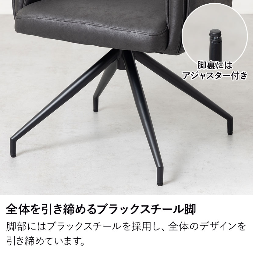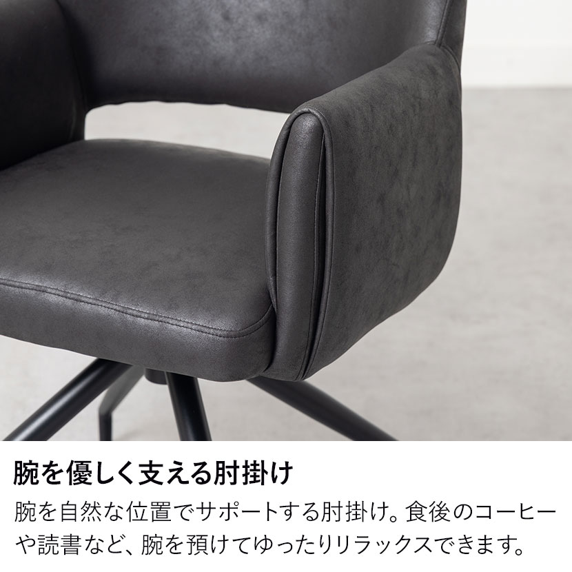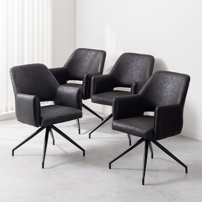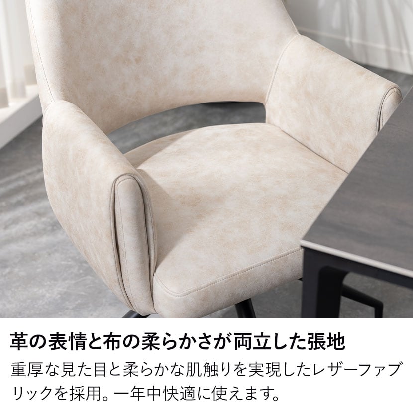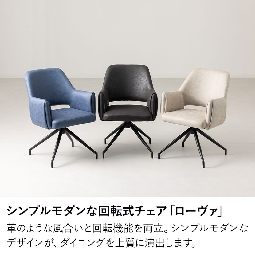 レザーファブリックの風合いとシンプルモダンなデザインが魅力の回転式ダイニングチェア「ローヴァ」。