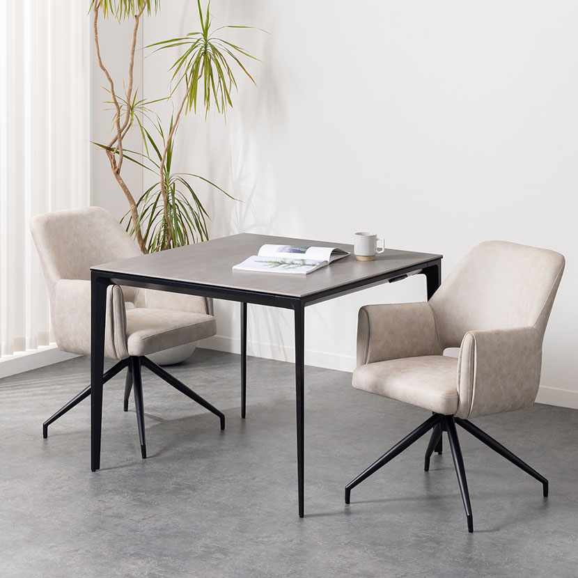デザイン性だけでなく、回転機能による利便性も兼ね備えており、ダイニング空間をワンランク上の雰囲気へと導きます。