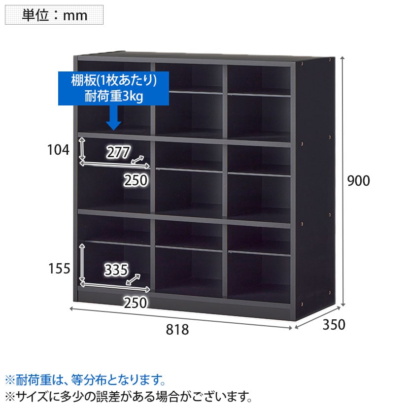シューズラック内寸(1マスあたり) / 幅250×奥行335×高さ155mm