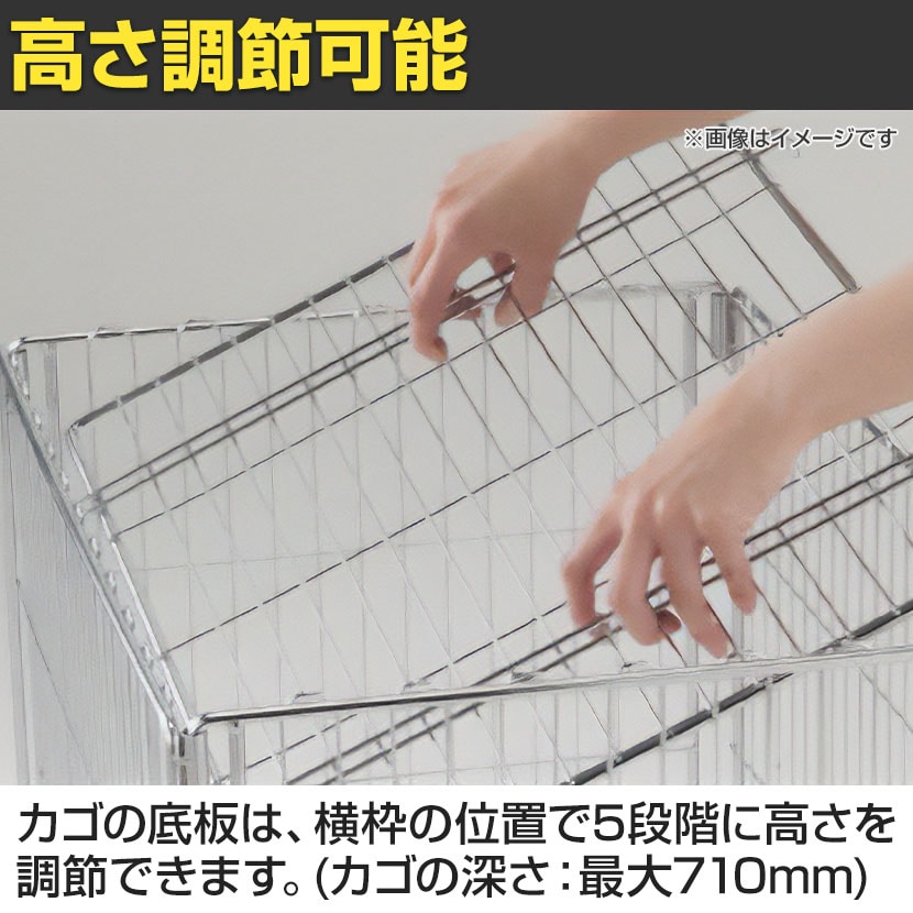 ・底板は横枠の位置で5段階に深さを調節できるので、商品のボリュームに合った陳列台にすることが可能です。