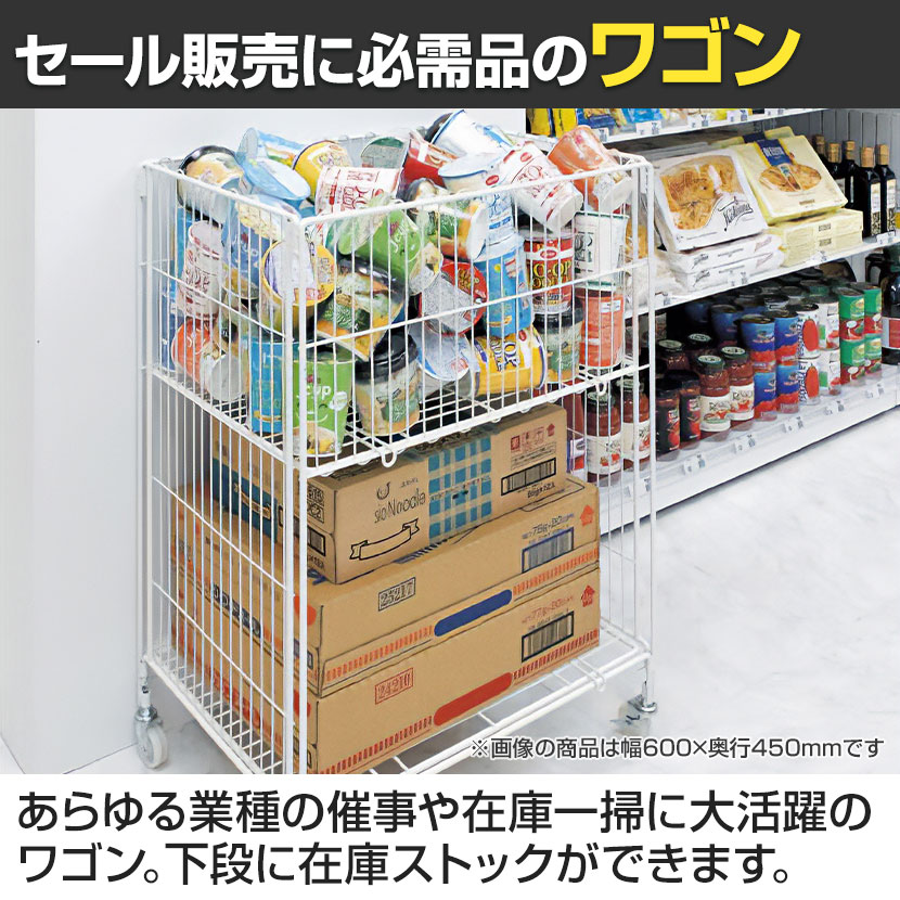 ・投げ込み型のワゴンの下段に在庫ストックができる2段ワゴンです。