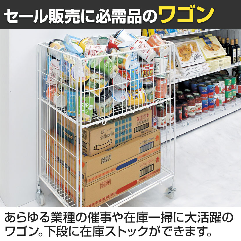 ・投げ込み型のワゴンの下段に在庫ストックができる2段ワゴンです。