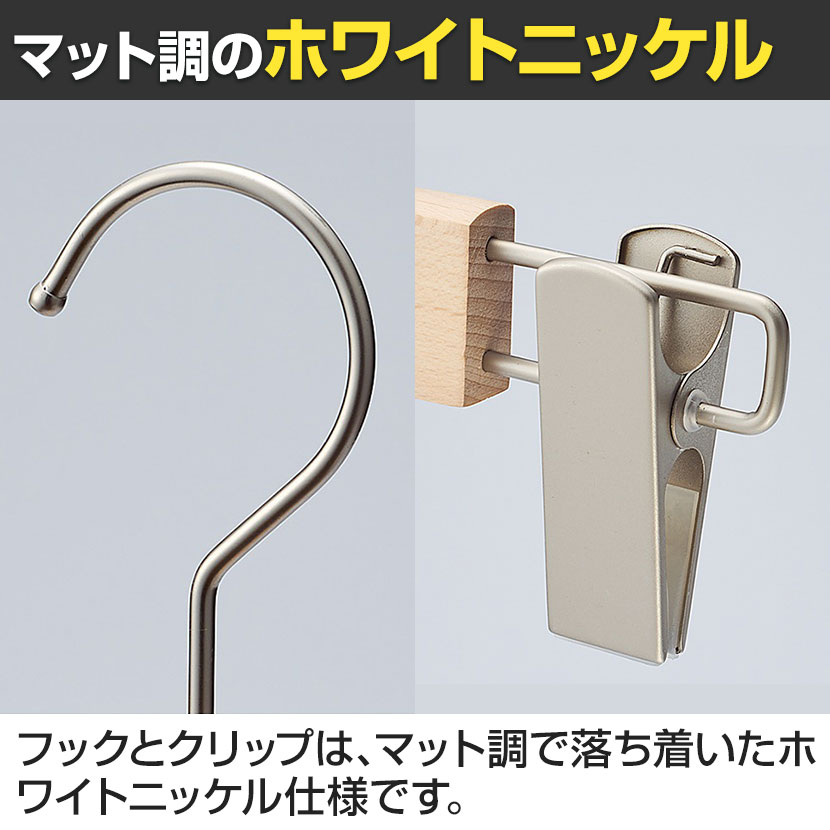・フックとクリップは、高級感のあるホワイトニッケルを使用しています。