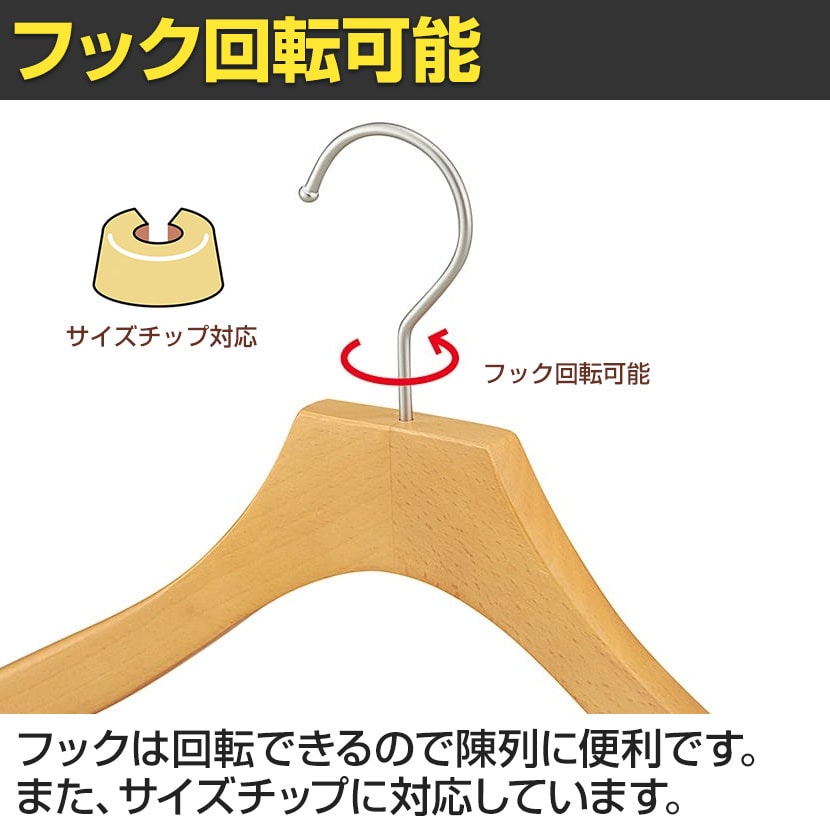 ・木目がきれいで高級感のあるブナ材を使用した肩厚ハンガー。