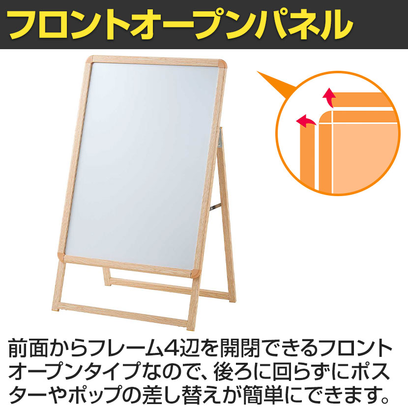 ・フロントオープンパネルは、前面からフレーム4辺を開閉できるので、後ろに回らずにポスターやポップの差し替えが簡単にできます。