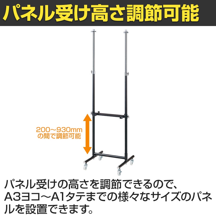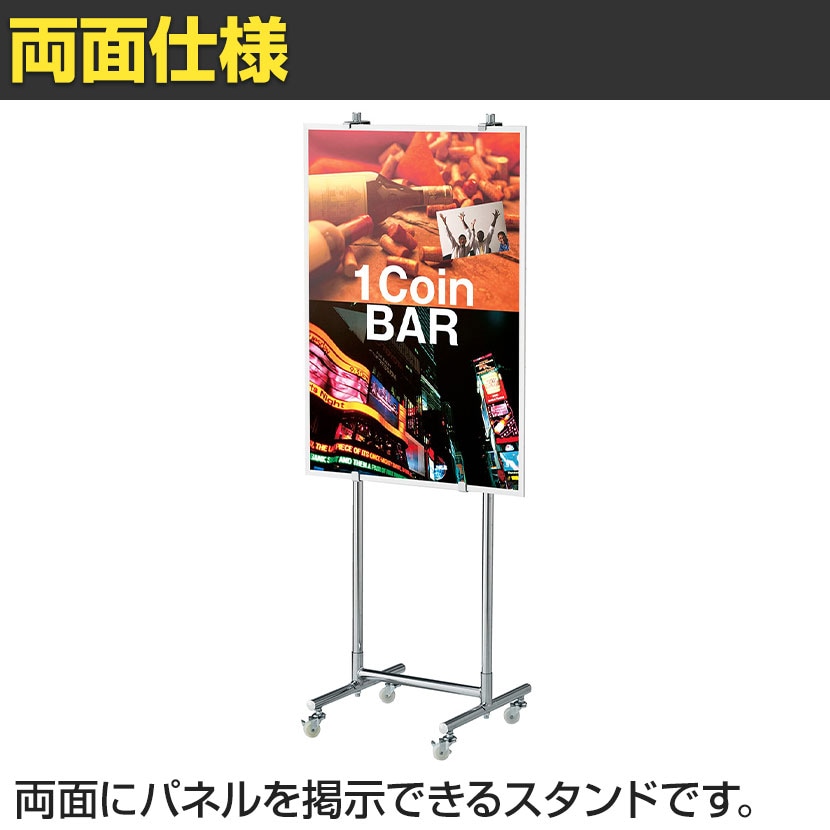 ・両面にパネルを掲示できるキャスター付きのスタンドです。