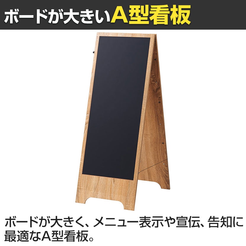 ボードが大きく、メニュー表示や宣伝、告知に最適なA型看板です。