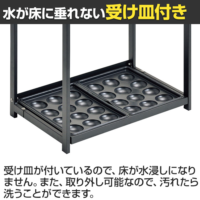 ・ステンレスで錆びにくく、受け皿を取り外して水を捨てられます。