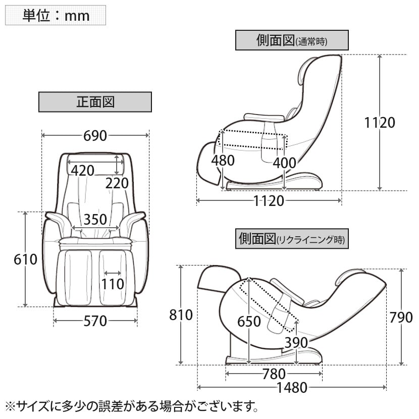 リクライニング時 / 幅690×奥行1480×高さ810mm