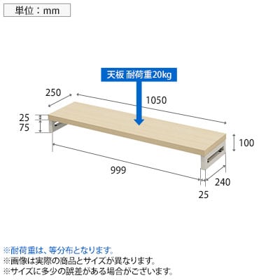 棚下有効内寸 / 幅999×奥行250×高さ75mm