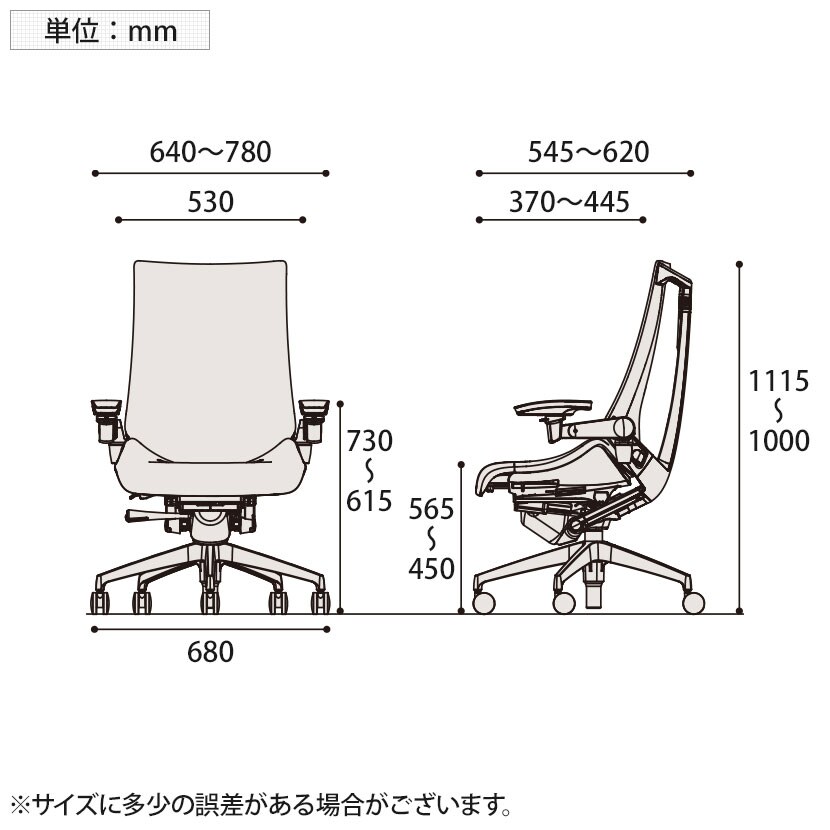肘高さ / 615~730mm