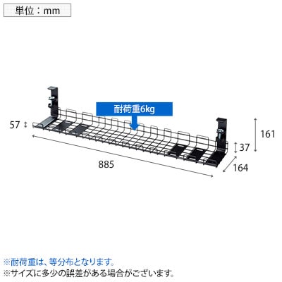・デスクに取り付け、ケーブルやタップを収納できるケーブル配線トレー。
