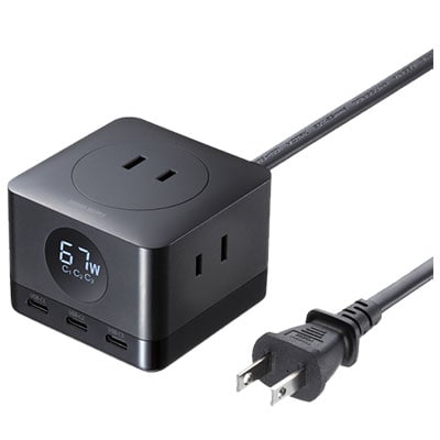 ・GaN窒化ガリウムUSB充電機能が付いた3個口電源タップ。