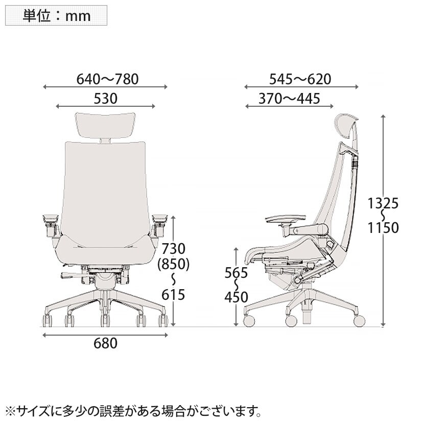 肘高さ / 615~730mm