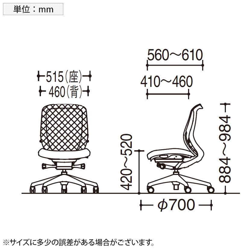 座面高さ / 420~520mm