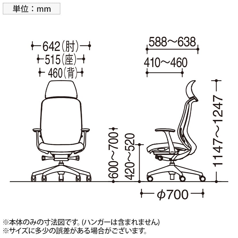 座面高さ / 420~520mm