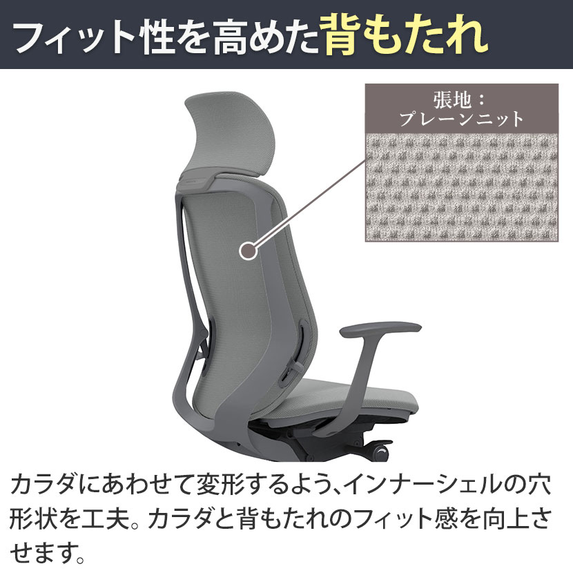 オフィスで働くひとりひとりにフィットする、これからのオフィスにふさわしい新感覚のオフィスチェアです。