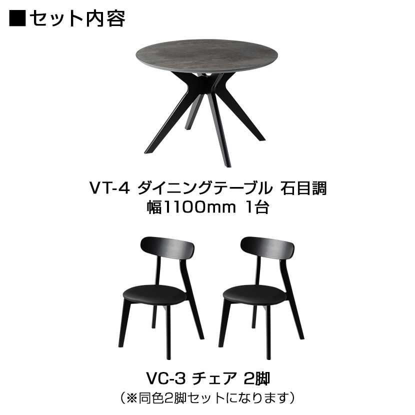 上質で洗練された空間を演出する石目調ラウンドテーブル+チェア2脚セット