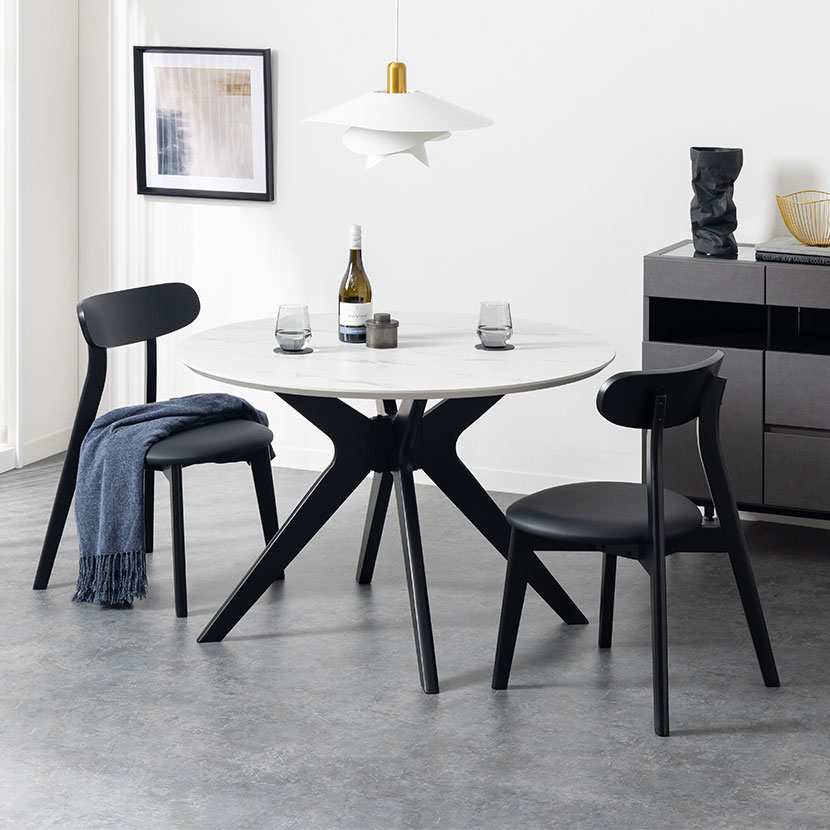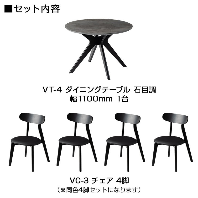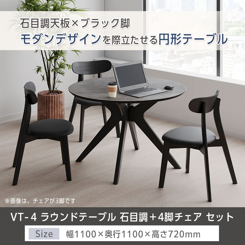 上質で洗練された空間を演出する石目調ラウンドテーブル+チェア4脚セット