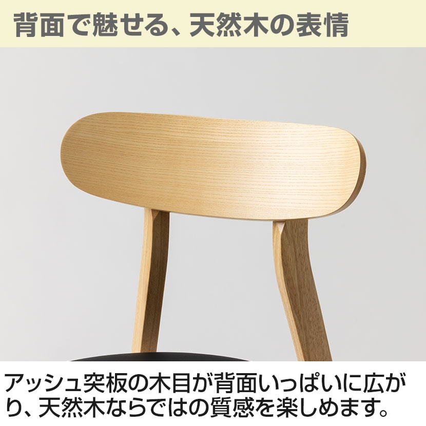 アッシュ突板の端正な木目が背面いっぱいに広がり、天然木ならではの手触りと豊かな質感を楽しめます。